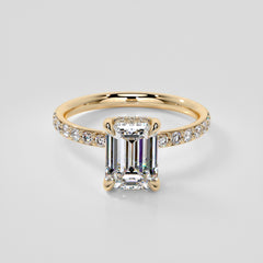 - Emerald Cut Hidden Halo Engagement Ring